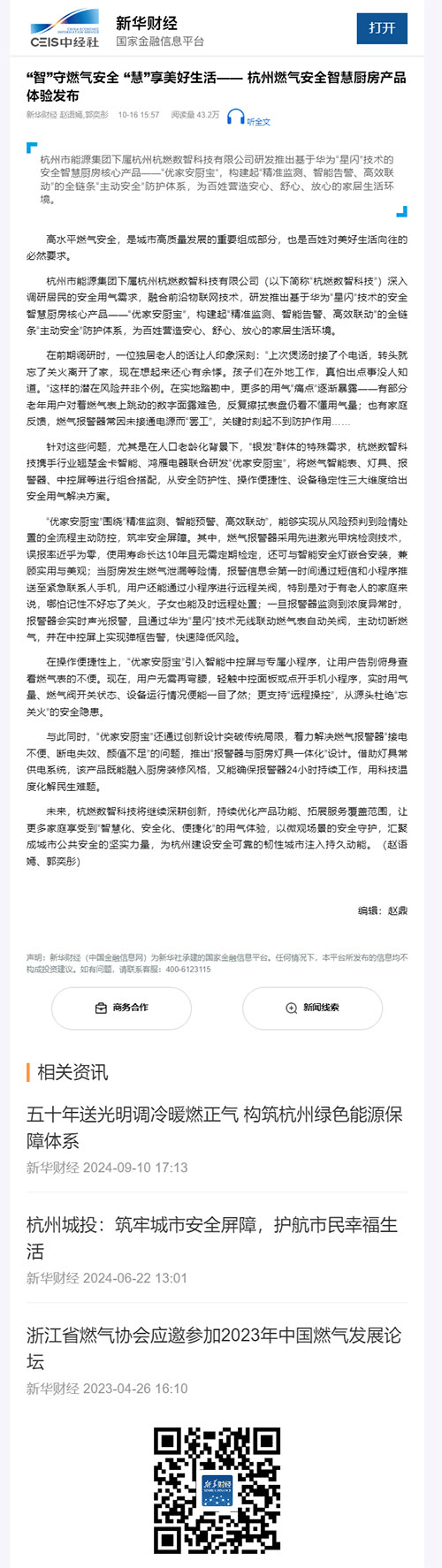 杭州市能源集團下屬杭州杭燃數(shù)智科技有限公司(以下簡稱“杭燃數(shù)智科技”)深入調(diào)研居民的安全用氣需求,融合前沿物聯(lián)網(wǎng)技術(shù),研發(fā)推出基于華為“星閃”技術(shù)的安全智慧廚房核心產(chǎn)品——“優(yōu)家安廚寶”,構(gòu)建起“精準監(jiān)測、智能告警、高效聯(lián)動”的全鏈條“主動安全”防護體系,為百姓營造安心、舒心、放心的家居生活環(huán)境。